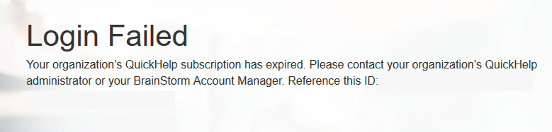 If your error doesn’t look like any of these images, verify the URL of the error page. If the URL does not specify “quickhelp.com”, then start by contacting your IT/Identity department.